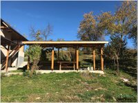 U okviru naše ponude, predstavljamo drvenu nadstrešnicu (trem) sa ogradom i vratima, koja je dizajnirana i izrađena prema specifičnim željama vlasnika. Ova nadstrešnica, sa krovištem na jednu vodu i prozirnim pokrovom od Lexana, omogućava estetski privlačan i funkcionalan prostor koji će obogatiti vašu baštu. Kvalitetna izrada i pažnja prema detaljima garantuju dugotrajnost i otpornost na vremenske uslove, čineći je savršenim mestom za odmor i uživanje u prirodi. Naša ekipa stručnjaka je tu da vam pomogne da realizujete svoje ideje i stvorite prostor koji će osvežiti vašu baštu.